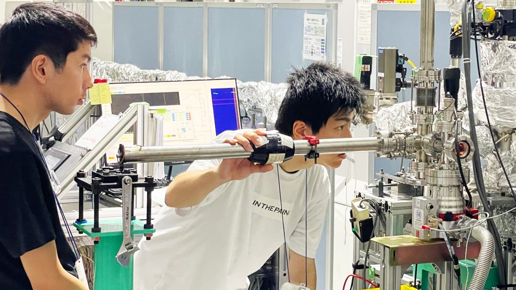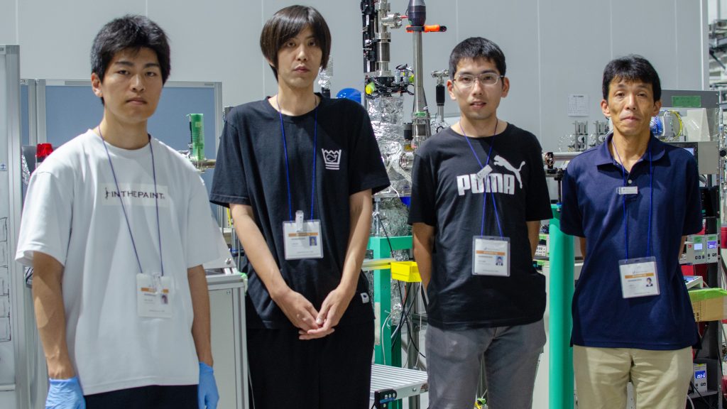 当日は、土屋 教授、片岡 助教のほか、研究室所属の寺沢さん(修士課程2年生)、鈴木さん(学部4年生)が実験を行いました。測定に使用したサンプルは、事前に研究室で準備したものを持参し、NanoTerasuの試料ホルダーにセットして電子状態の測定を行いました。取得したデータは研究室に持ち帰り、詳細な解析を行った後、マイクロイオンビームによる測定結果と統合し、リチウム電池正極材料の電子状態解明をさらに推進していく予定です。
