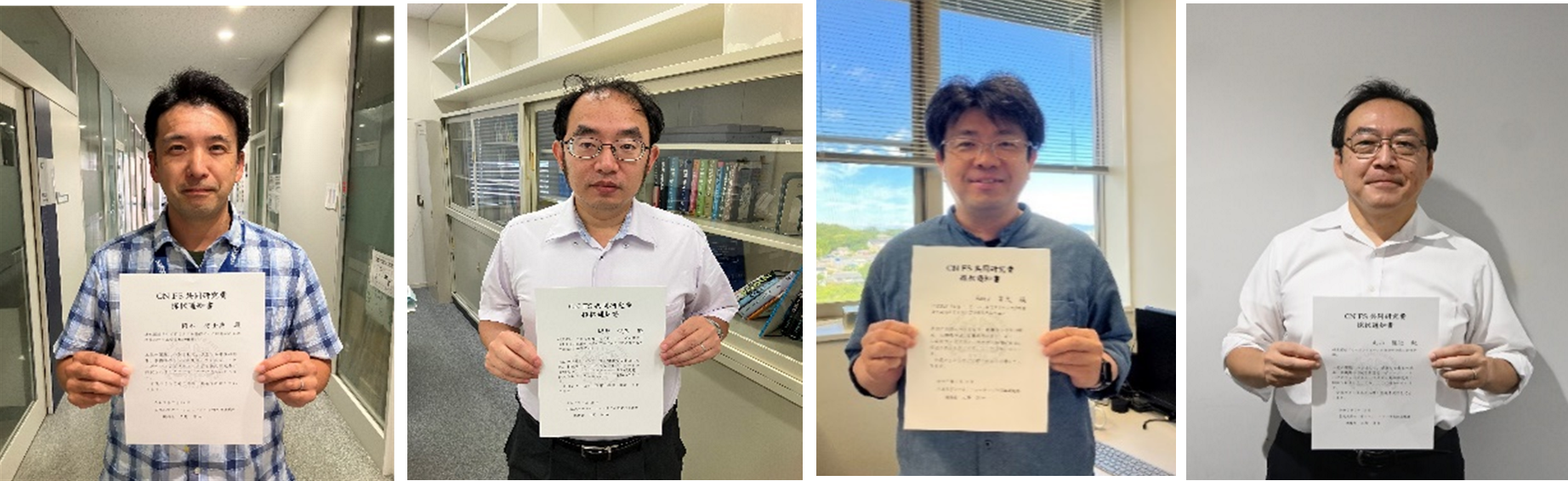 2025年度は、以下の4件の研究課題が採択されました。これらの採択結果は、2025年10月2日に開催されたカーボンニュートラル研究推進機構の第9回研究交流会にて公表されました。当日は、大野栄治機構長から4人の研究代表者に採択通知書が手渡されました。