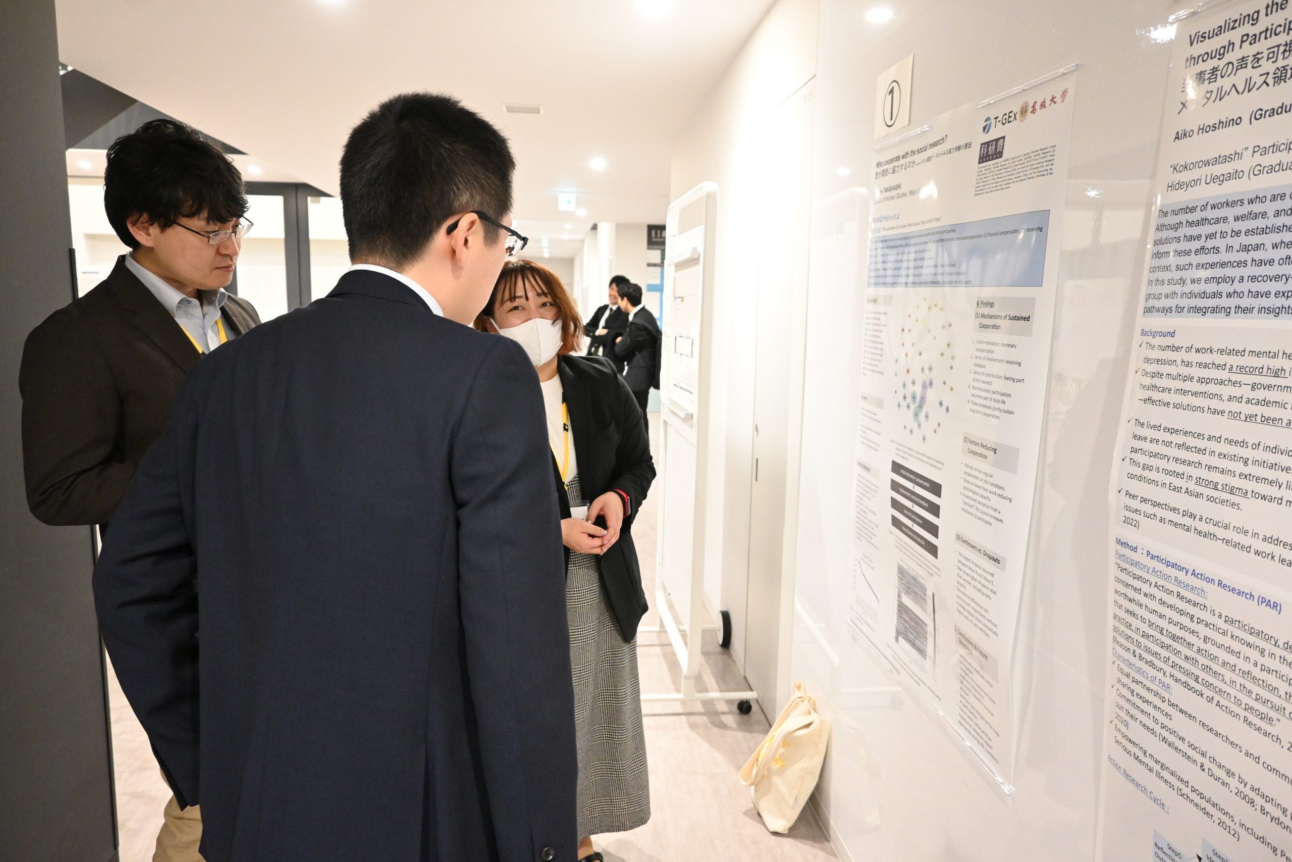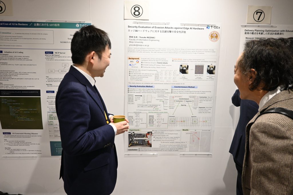2025年12月17日(水)、名古屋大学東山キャンパスにて、「令和7年度 T-GEx 研究成果エキシビション ―研究と社会の接点―」(主催:東海国立大学機構 名古屋大学・岐阜大学)が開催されました。本学からは、T-GExアソシエートである野崎 佑典 助教(情報工学部・情報工学科)、髙橋 香苗 助教(人間学部・人間学科)、仲吉 朝希 助教(薬学部・薬学科)が参加しました。