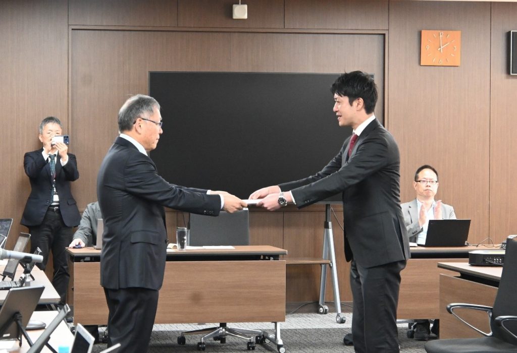 式典では、野口 光宣 学長より各採択者へ採択通知が授与されました。野口学長は祝辞の中で、「T-GExは世界で活躍できる研究者の育成を目指し、国際的な研究プロジェクトの牽引や産学連携の推進を支援するプログラムです。本学では、毎年1名の優秀な研究者の輩出を目標としており、これまでに6名が採択されています。本プログラムは、新たな課題に挑戦し、チームを牽引して課題解決を実現する“知の開拓者”を育成するものであり、本学の掲げる『創造型実学』の理念とも深く通じています。皆さんの成長が本学の研究力向上につながることを期待しています」と激励の言葉を述べました。