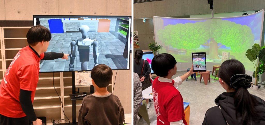 本展示は「名城の新しい施設で最新研究を体験!」をテーマに、1階ロビー「ライオンズコモンズ」を会場として実施。理工学部・情報工学部の研究室による体験型展示のほか、学術研究支援センターによる研究紹介や産学連携の取り組みを紹介しました。