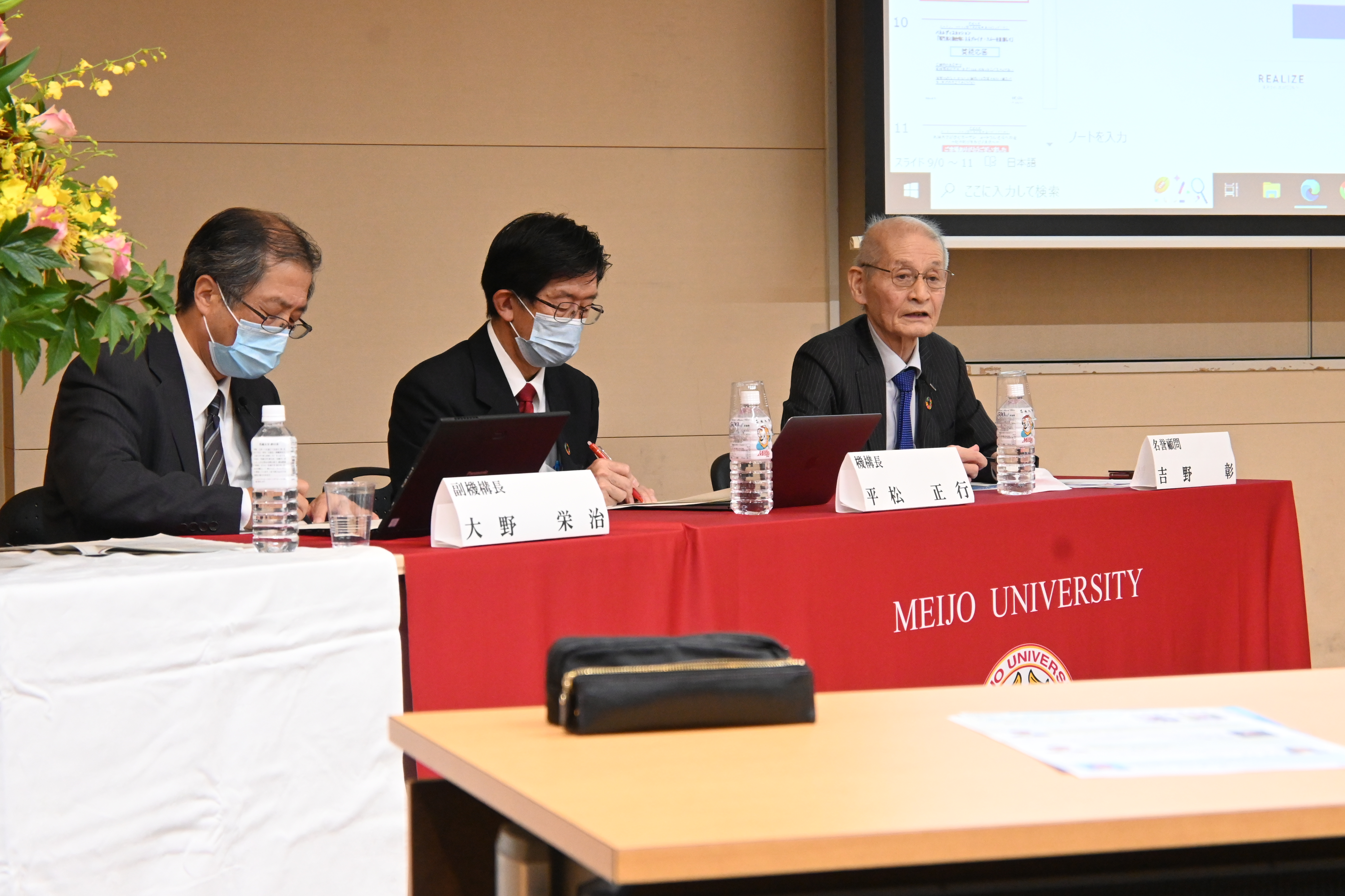 名城大学カーボンニュートラル研究推進機構は、第1回シンポジウムを2022年10月10日(祝・月)にオンラインで開催しました。『名城大学が歩むカーボンニュートラル達成への道~総合知が生み出す未来へ~』をテーマに、名誉顧問を務める吉野 彰終身教授による特別講演や、研究グループリーダーなどが参加したパネルディスカッションが行われ、全国からのべ300人が視聴しました。